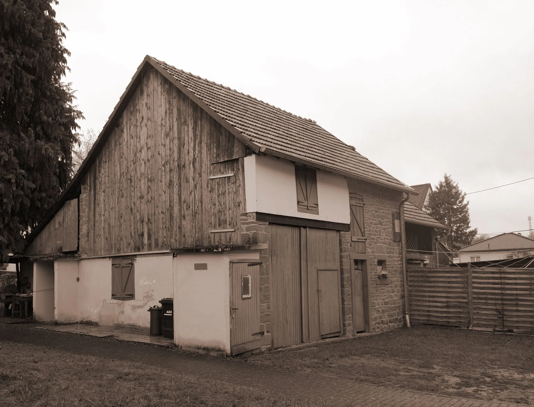 Die Scheune wurde in einfachem Standard erbaut. Um das von der Bauherrschaft gewünschte Raumprogramm unterzubringen, wird ein Abbruch der „Bud“ und ein Ersatz durch einen Anbau in ähnlicher Kubatur vorgeschlagen. Die Innenwand in der Scheune aus Vollziegeln soll sichtbar erhalten werden. Die jetzige Tenne wird auf die alte Höhe (oberhalb Scheunentor) erhöht und als Wohnküche genutzt. Dieser Raum bildet das Herz des Hauses und nimmt auch die Treppe in die oberen Geschosse auf. Südlich der Küche liegt im EG der Eingangsbereich mit Stauraum, als Schleuse vor dem Privatbereich. Zusätzlich besteht hier ein kleiner Wohntrakt aus Bad und einem Schlafzimmer.